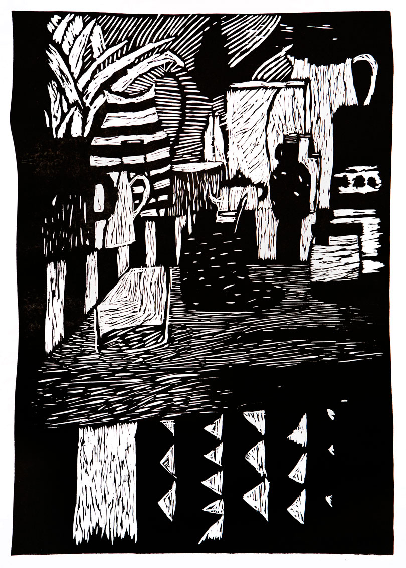 Techniki linorytu, drzeworytu, suchej igły, monotypii, kolażu graficznego oraz eksperymentalnych form odbitki.